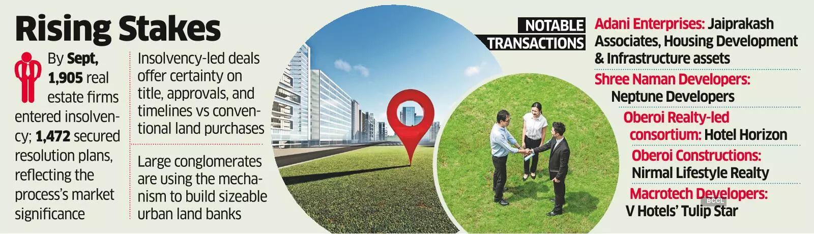 “For buyers assessing large urban parcels, insolvency-driven transactions provide much more certainty regarding title, approvals, and timelines compared to traditional land deals. Once a resolution plan is approved, execution risks diminish significantly, which encourages serious developers to invest large sums at this stage instead of pursuing fragmented land assemblies,” said Sanjay Daga, MD & CEO of Anex Advisory.